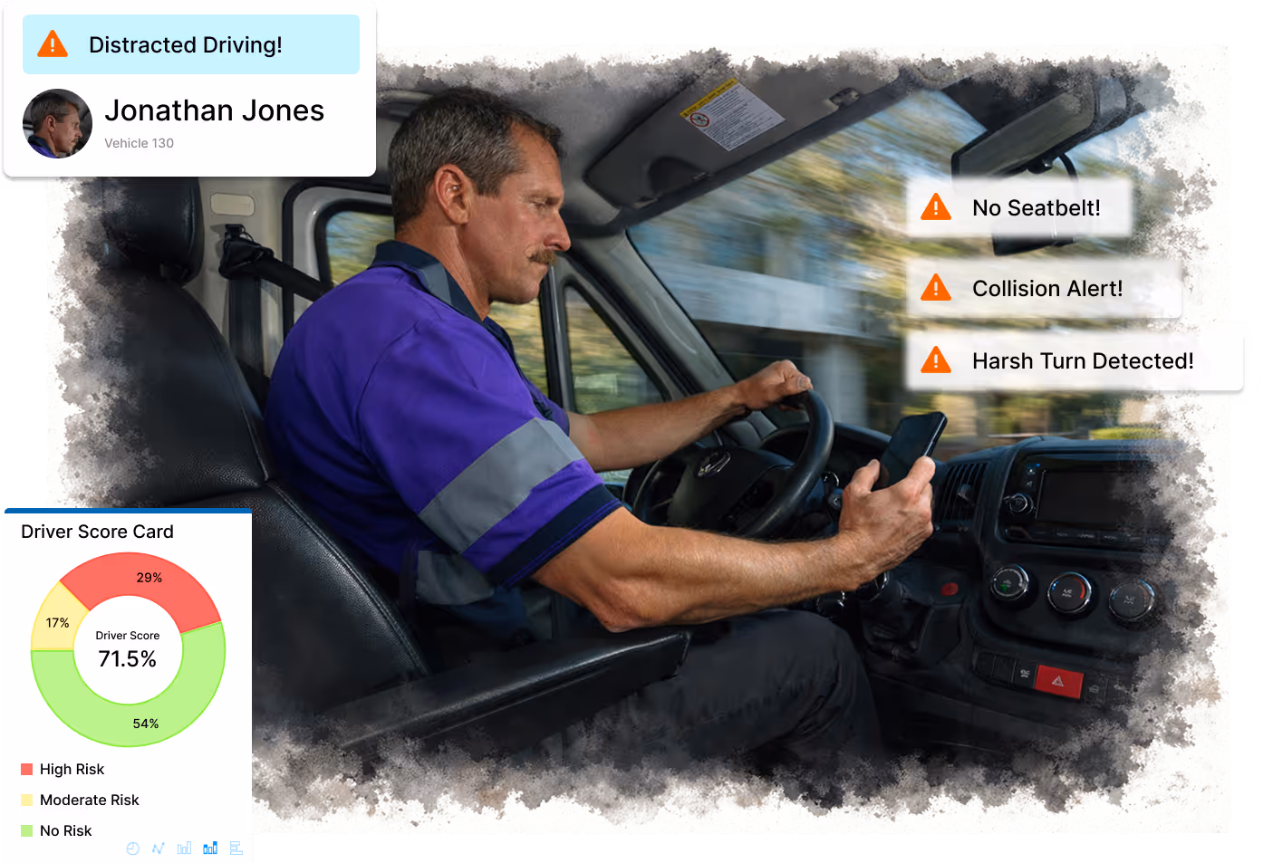 Tracks risky driving behaviors like speeding, harsh braking, and harsh cornering